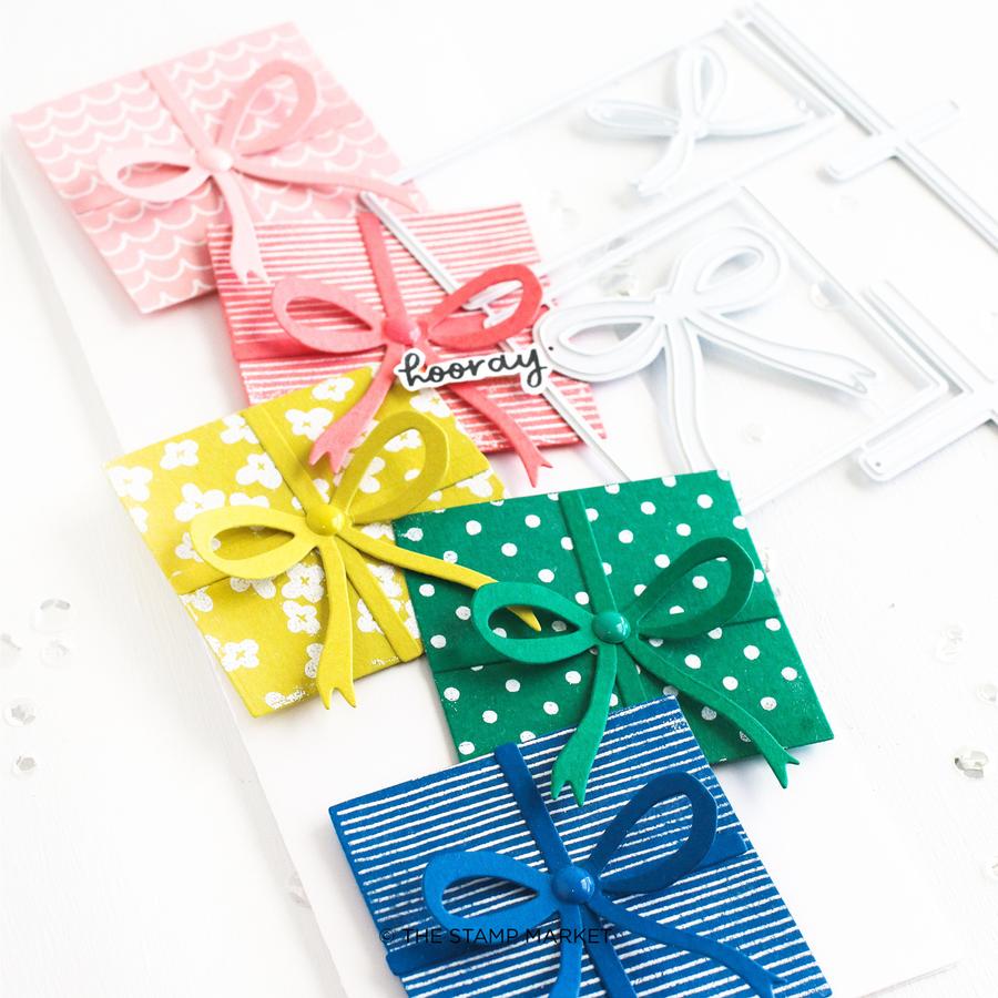 Metal Edge Dies with 6 Pieces. Create your own custom die cut presents for cardmaking, gift giving or memory keeping. Stamp with your favorite patterns and accent with one of our many greeting sets. Petite painted Patterns is a great set to use for customizing these little presents.
