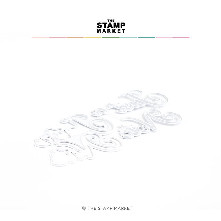 Metal Edge Dies with 2 pieces. Die cut and layer this simple script Just a note. Cut out the word and the shadow layer. Also the shadow layer cuts out the coordinating Stamp Set. Approx 3" x 2.75".