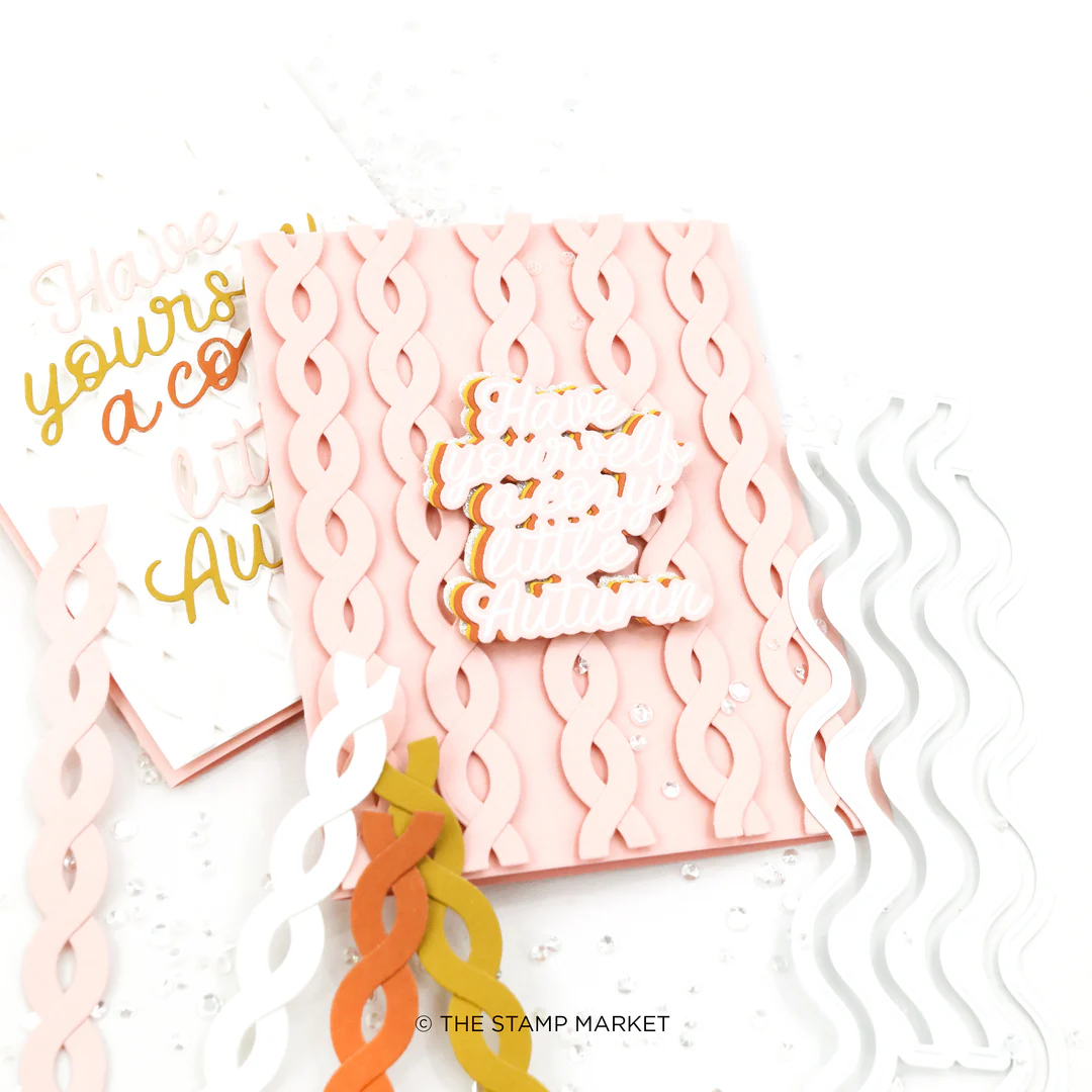 Metal Edge dies with 4 pieces. Create a cozy background for fall or winter using our Cable knit design. Simple twist together the curvy lines for a simple knit effect.