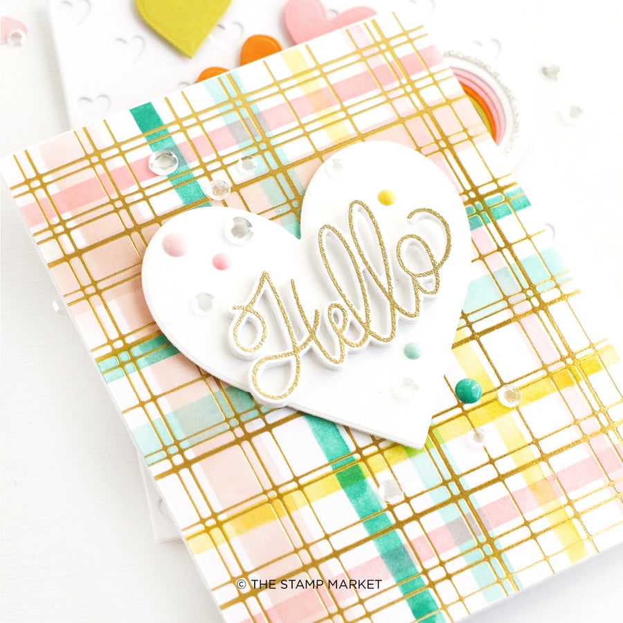 1 4X6 Stamp Set with 8 pcs. Send a little Hug or Hello or make a perfect valentine. Accent your favorite background or floral with these simple greetings with a mix of handwritten and classic type. COORDINATING DIES AVAILABLE.