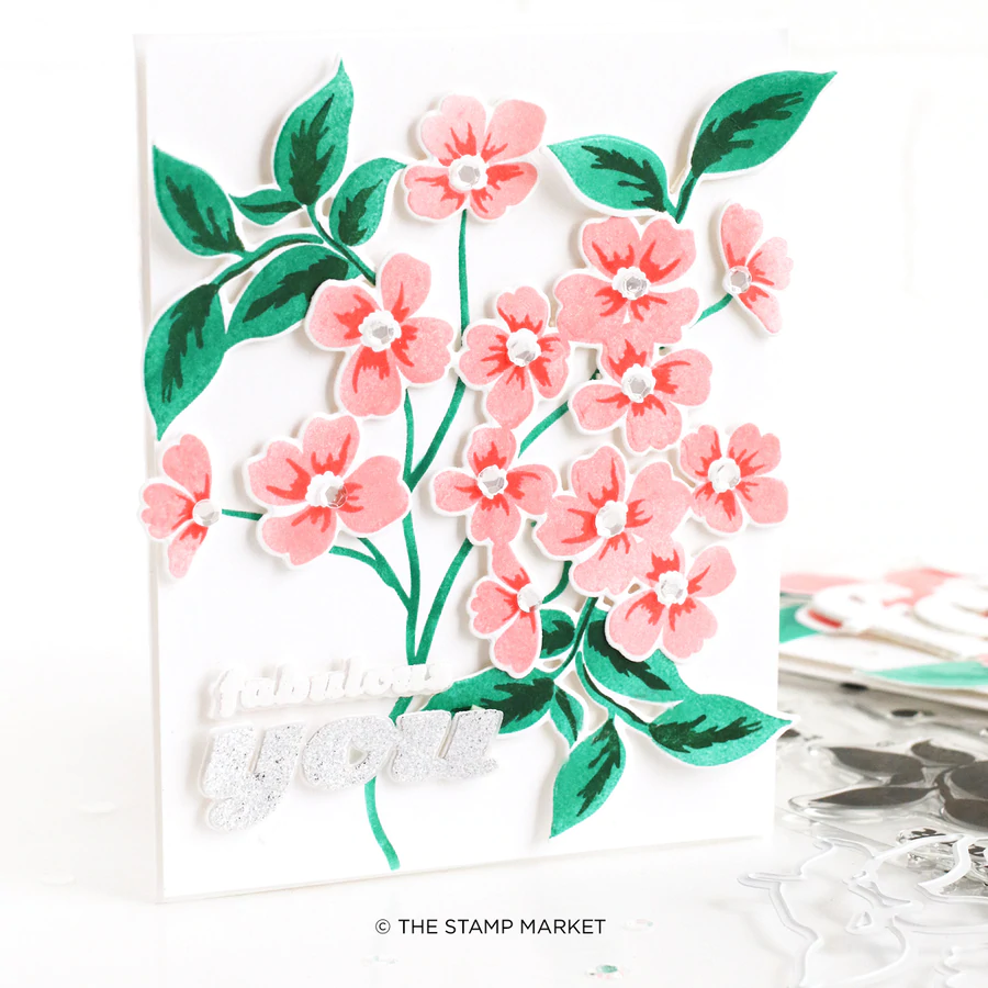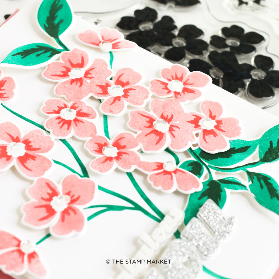 1 6X8 Clear Photopolymer Stamp Set with 13 Images. Create gorgeous floral bouquets using this cluster of stamp images. We've taken the guess work out for you on how to arrange this beauty. Use with the coordinating stencil and dies for best results.
