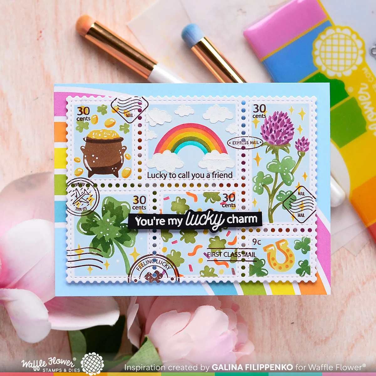Waffle Flower - Postage Collage Lucky Stamp Set