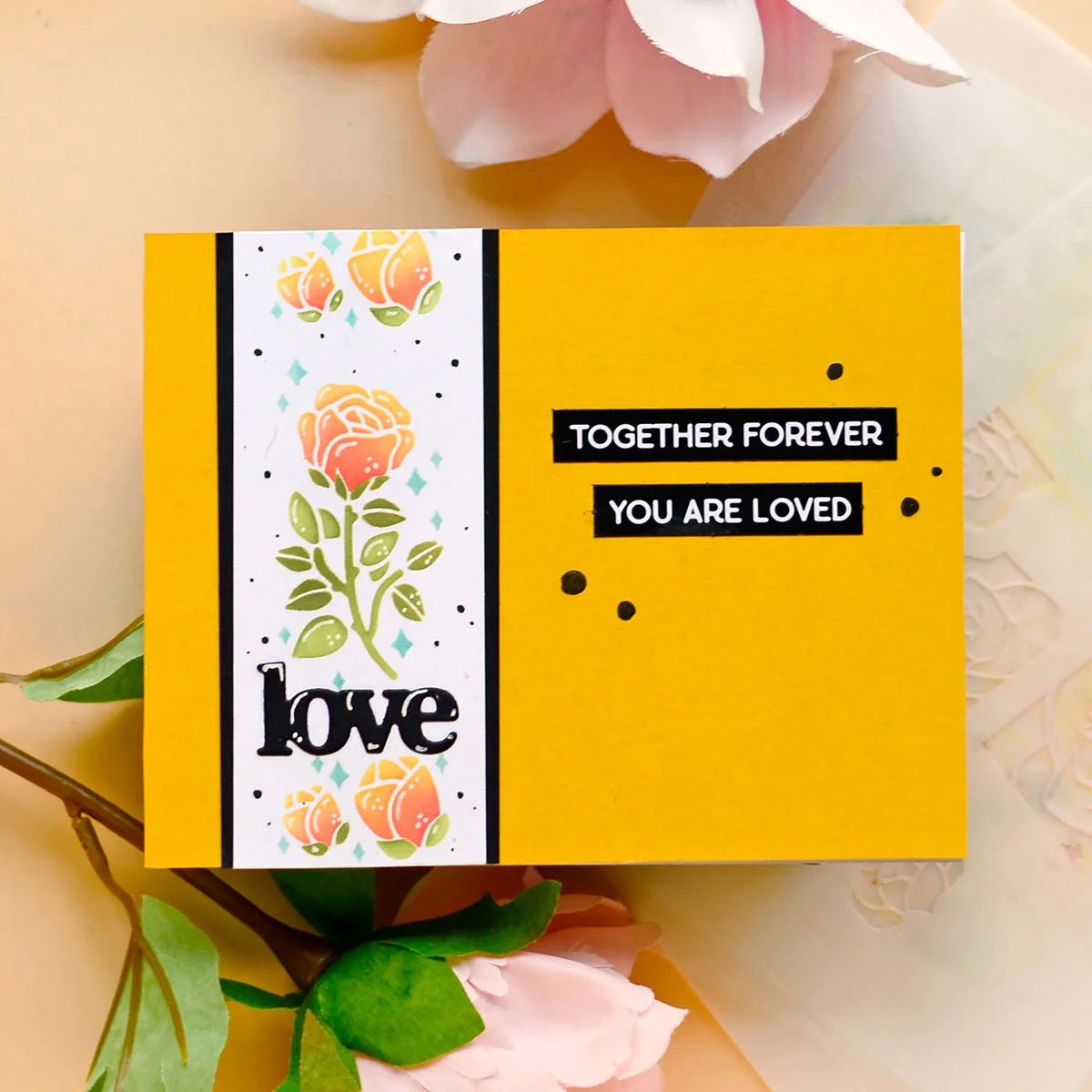 Add the perfect Love sentiment to your cards with this subsentiments diecut sheet. This sheet includes 15 sentiment strips in 1/4" increment in width. Precut - easy tear-off diecut shapes. Each sheet comes in a clear bag for protection and storage.