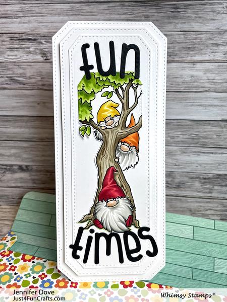 Clearly Whimsy Stamps Collection "Gnome Lift You Up" designed by Crissy Armstrong for Whimsy Stamps. Intended for use on slimline or longer card base style creations. High quality photopolymer clear stamps, use with an acrylic block Approximate size in inches: 4 x 6 polymer sheet.