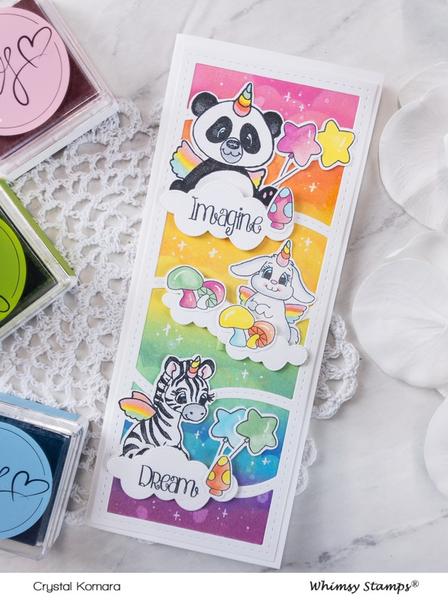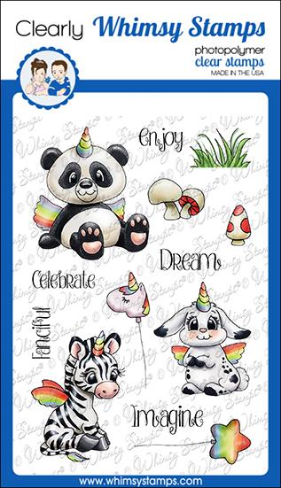Clearly Whimsy Stamps Collection "Crittercorns" illustrated by Crissy Armstrong for Whimsy Stamps. High quality photopolymer clear stamps, use with an acrylic block Approximate size in inches: 4 x 6 polymer sheet.
