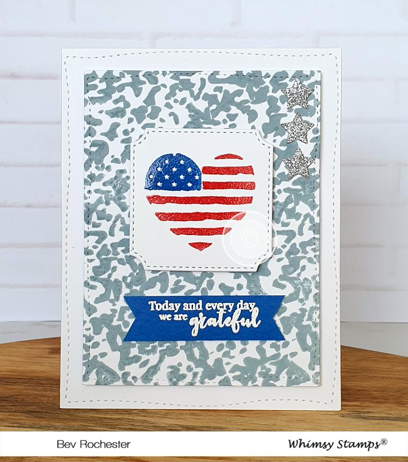 Clearly Whimsy Stamps Collection "Military Family" designed by Deb Davis - Amped2Stamp for Whimsy Stamps. This stamp set contains images and sentiments perfect to honor our military heroes and their families for the sacrifice they make each and every day. Pair with our Military Heroes clear stamps, Military Camo Background stamp, and/or our Military Die Set, each sold separately. High quality photopolymer clear stamps, use with an acrylic block Approximate size in inches: 4 x 6 polymer sheet.