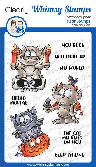 Clearly Whimsy Stamps Collection "Gargoyle and Friends" illustrated by Dustin Pike for Whimsy Stamps. High quality photopolymer clear stamps, use with an acrylic block Approximate size in inches: 4 x 6 polymer sheet.