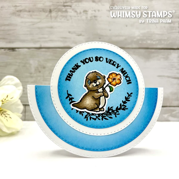 Clearly Whimsy Stamps Collection "Magic Wheel" clear stamp set designed by Deb Davis - Amped2Stamp - for Whimsy Stamps. Spin the wheel and see what's revealed! This floral themed image and sentiment set was designed to coordinate with our Magic Wheel Die Set, and also works with our Pierced and Stitched Circles die set each sold separately. High quality photopolymer clear stamps, use with an acrylic block Approximate size in inches: 4 x 6 polymer sheet.