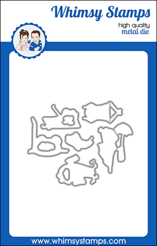 Whimsy Stamps Die Collection "Beach Frogs Outline Die Set" designed by Deb Davis and Denise Lynn for Whimsy Stamps. Coordinates with our Beach Frogs clear stamp set, sold separately. 9 outline dies - use to cut out stamped image.
