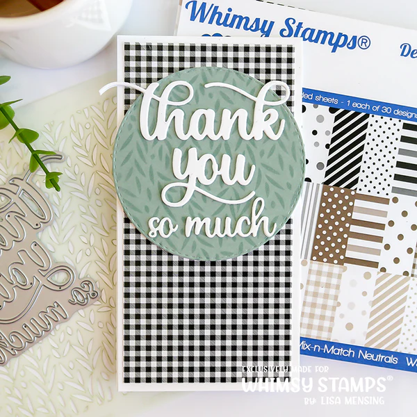 Whimsy Stamps Die Collection "Thank You So Much Word Die" designed by Deb Davis and Denise Lynn for Whimsy Stamps. Use this die as is, or for added fun along with our Many Thanks Collection of stamps, dies, and foil plates, each sold separately. Die measures approximately - 3.5" on the longest side