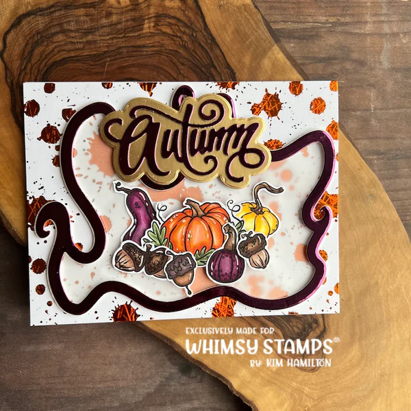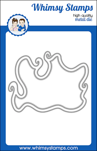 Whimsy Stamps Die Collection "Curly Frame" designed by Deb Davis and Denise Lynn for Whimsy Stamps. Large 2 piece die set - use as a frame or shaker on both handmade cards or scrapbook pages. This uniquely shaped die lends itself to flowing water, billowing smoke, snowy winter scenes, spooky potions, and so much more. Sized to fit A2 or larger card bases.