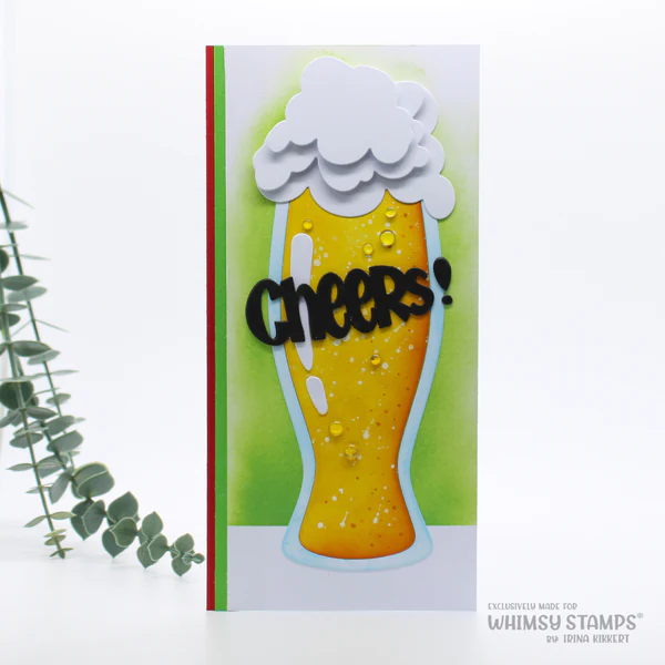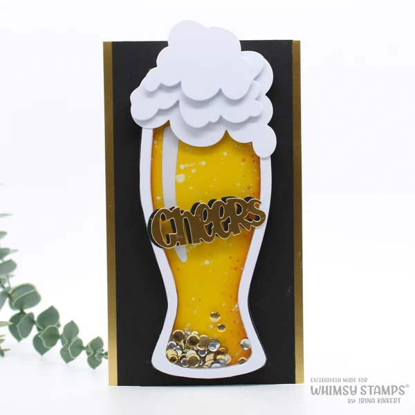 Whimsy Stamps Die Collection "Frosty Glass Die Set" designed by Deb Davis and Denise Lynn for Whimsy Stamps. This is a set of 8 dies - Everything from an ice cream float, to a frosty beer, or other yummy drinks you like, this die can be customized for anyone's taste. Pair up with our "Brewski" clear stamp set, "Cheers" die set, and/or our St. Patrick's Day products (all sold separately) for endless frosty drinks fun. Great for easy shaker cards too.