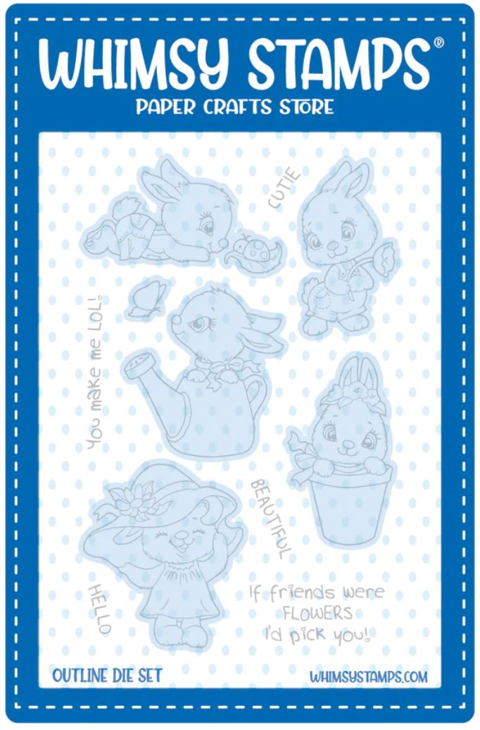 Whimsy Stamps Die Collection "Bunnies in the Garden Outline Die Set" designed for Whimsy Stamps. Coordinates with our Bunnies in the Garden clear stamp set, sold separately. 6 outline dies - use to cut out stamped image.