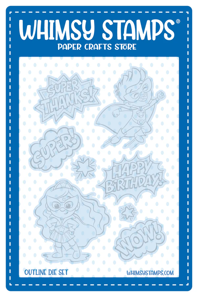Whimsy Stamps Die Collection "Super Kids Outline Die Set" designed for Whimsy Stamps. Coordinates with our Super Kids clear stamp set, sold separately. 8 outline dies - use to cut out stamped image.
