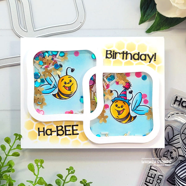 Whimsy Stamps Die Collection "Connected Tiles Frame Die" designed by Denise Lynn and Deb Davis for Whimsy Stamps. Single die, perfectly sized for A2 cards or larger. Make shaker cards, use to frame an image or sentiment, create a focal point or just an accent. Measures in inches: 5" on the longest side. The dropout pieces of our Slimline Window Tiles die (sold separately) also match and fit inside the openings.