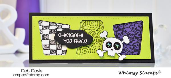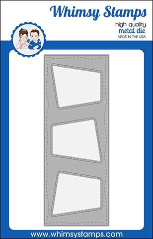 Whimsy Shapeology Die Collection "Slimline Marquee Die" designed by Denise Lynn and Deb Davis for Whimsy Stamps. For creating tall and thin cards, this die is 8 x 3 with peekaboo windows and stitched details - perfect for shaker cards, hidden surprises, and peekaboo critters. Slimline cards fit in legal size envelopes.