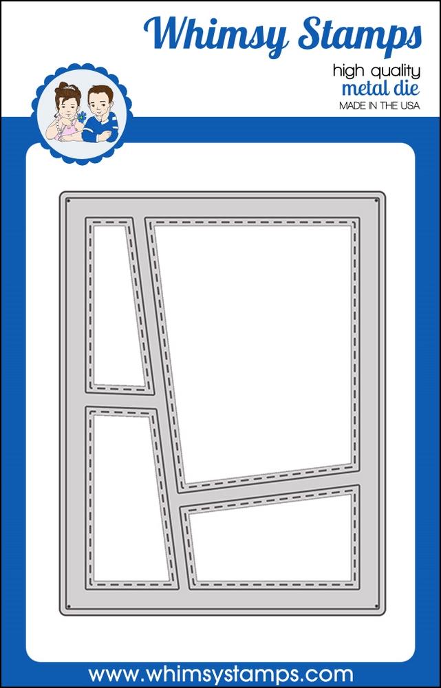 Whimsy Shapeology Die Collection "Wonky Window 1 Die" designed by Denise Lynn and Deb Davis for Whimsy Stamps. A2 sized die with peekaboo windows and stitched details - perfect for shaker cards, hidden surprises, and peekaboo critters.
