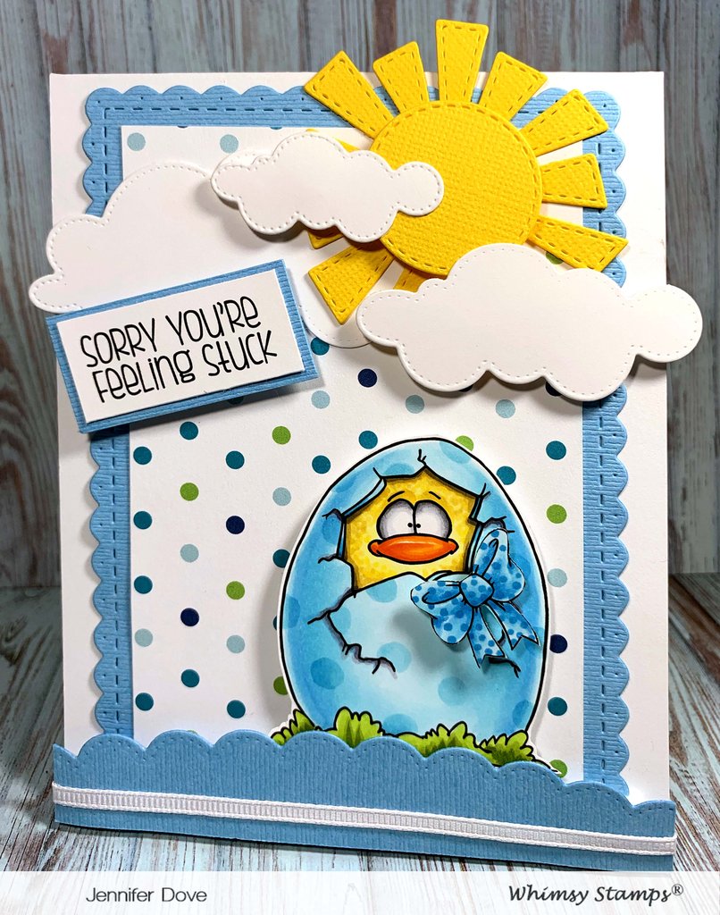 Whimsy Shapeology Die Collection "Up in the Clouds Die Set" designed by Denise Lynn and Jennifer Dove for Whimsy Stamps. Our line of Kinetic Dies make it easy to create fun cards and projects which incorporate movement. Designed to work with A2 or larger sized cards. Set includes 8 dies - 3 different sized cloud dies with stitched and pierced accents, along with a sun and some birds. Pair these with our other No-See and Kinetic Dies to create slider cards, hidden sliders, movement cards, and more. All Kinetic Dies have been designed to be used together or separately.