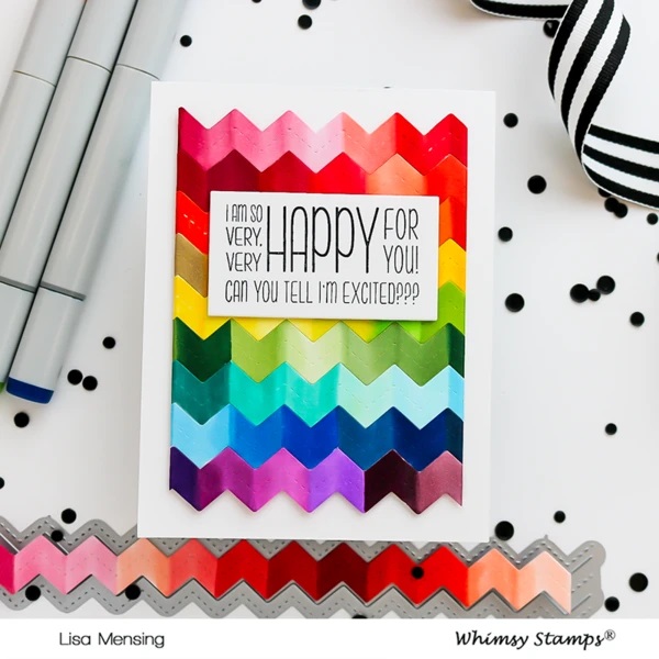 Whimsy Stamps Die Collection "Slimline Zig Zag Edger Die Set" designed by Denise Lynn and Deb Davis for Whimsy Stamps. Another awesome Slimline Die added to our growing collection to help you create tall and skinny cards quickly and easily. Set of 3 dies to create different edge details to your cards. Thin metal dies perfect for all your card making and crafting projects. Must be used with a die cutting machine, such as Cuttlebug, Big Shot, or Wizard.
