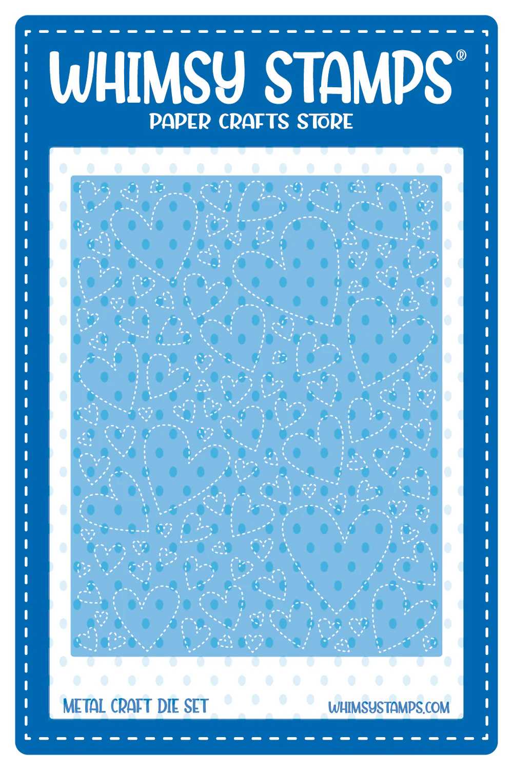 Whimsy Stamps Die Collection "Floating Hearts Cover Plate Die" 1 large die, sized for A2 cards - creates a stitched background of floating hearts in various sizes and shapes. This die does not cut, only creates a stitched effect. Thin metal dies perfect for all your card making and crafting projects. Must be used with a die cutting machine, such as Cuttlebug, Big Shot, or Wizard. Please note, that it is common for long and/or thin die shapes to bend or warp when used in die machines. This should not cause any issue with the effectiveness of the die when used properly.