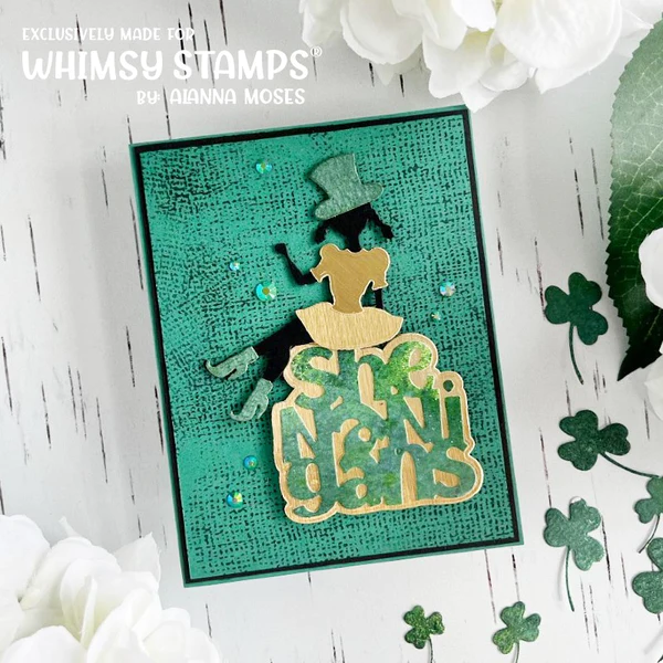 Whimsy Stamps Die Collection "Shenanigans Word and Shadow Die Set" designed by Deb Davis and Denise Lynn for Whimsy Stamps. This is a set of 2 dies - 1 die cuts the word shenanigans and the other is a shadow layer. Use separately or together. Coordinates great with our new Shenanigans Lassie Die Set, and many of our other St. Patrick's Day products each sold separately.
