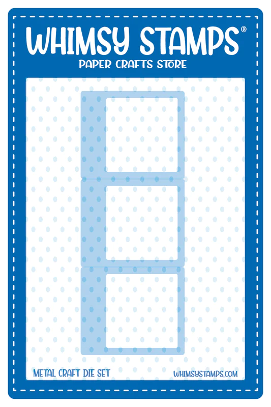Whimsy Stamps Die Collection "Polaroid Die" designed by Deb Davis for Whimsy Stamps. Use this die as a slimline with 3 Polaroid windows for your peeking or focal point images. You can also fold on the score line or cut apart and use one or two windows to fit smaller card bases. Coordinates perfectly with our Fun with Words dies, sold separately. Thin metal dies perfect for all your card making and crafting projects. Must be used with a die cutting machine, such as Cuttlebug, Big Shot, or Wizard. Please note, that it is common for long and/or thin die shapes to bend or warp when used in die machines. This should not cause any issue with the effectiveness of the die when used properly.